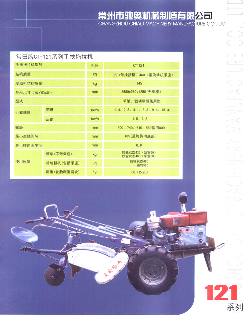 常州市馳奧機(jī)械制造有限公司是生產(chǎn)手扶拖拉機(jī)的專業(yè)生產(chǎn)企業(yè),公司位于風(fēng)景秀麗、人文薈萃的江蘇省常州市,緊鄰滬寧、寧常高速以及312國道,交通極為便利。公司擁有先進(jìn)的手扶拖拉機(jī)生產(chǎn)線,主要生產(chǎn)81/91,121/151型手扶拖拉機(jī),產(chǎn)品均為國家農(nóng)機(jī)購置補(bǔ)貼產(chǎn)品。