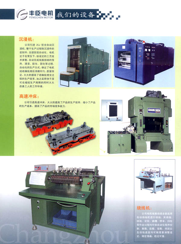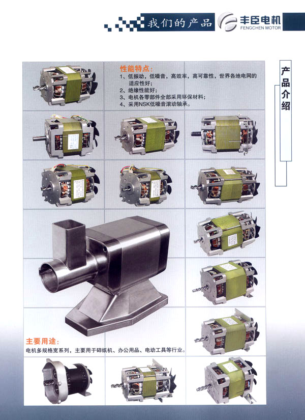 常州市豐臣電機有限公司成立于2001年6月,是一家在投資1000萬元基礎上創(chuàng)辦的股份合作制企業(yè)。 公司坐落于常州市遙觀鎮(zhèn)劍湖開發(fā)區(qū),西臨京杭大運河旁,南依312國道,北靠常錫路,交通便利,具有得天獨厚的地理優(yōu)勢。 豐臣電機公司專業(yè)生產(chǎn)從YY70-YY145系列感應電動機,年生產(chǎn)能力達150萬臺,年生產(chǎn)總值近1億元人民幣。公司現(xiàn)擁有員工300余人,其中高級工程師、高級技師、高級管理人員及其它專業(yè)技術人員40余人;擁有先進的生產(chǎn)能力、企業(yè)管理能力、技術開發(fā)能力、質量管理經(jīng)驗;具有各類專業(yè)生產(chǎn)設備25臺(套),專業(yè)檢測設備器具50余套。 本公司在發(fā)揮傳統(tǒng)技術優(yōu)勢的基礎上,積極開展多方位的技術合作,協(xié)同常州市津盛辦公用品有限公司開發(fā)感應電機產(chǎn)品市場。公司引進國際上先進的全自動浸漆生產(chǎn)線,產(chǎn)品生產(chǎn)自動化程度高,產(chǎn)品質量穩(wěn)定可靠。電機表面有噴漆、涂塑等防腐處理,產(chǎn)品具美觀、耐腐蝕、安裝簡便等優(yōu)點,廣泛應用于辦公設備用品、電動工具等行業(yè)。 本公司產(chǎn)品已通過UL認證,并于2002年通過ISO9001:2000國際質量管理體系認證, 2005我公司年被評為江蘇省市場重質量守誠信優(yōu)秀單位。 本公司以顧客滿意為宗旨,以科技創(chuàng)新、精品服務為經(jīng)營理念,注重產(chǎn)品質量的持續(xù)改進。我們的質量方針是:“以顧客要求為己任,我們不斷追求技術領先、優(yōu)質高效,滿意服務”,我公司真誠與各新老顧客合作,攜手共進。