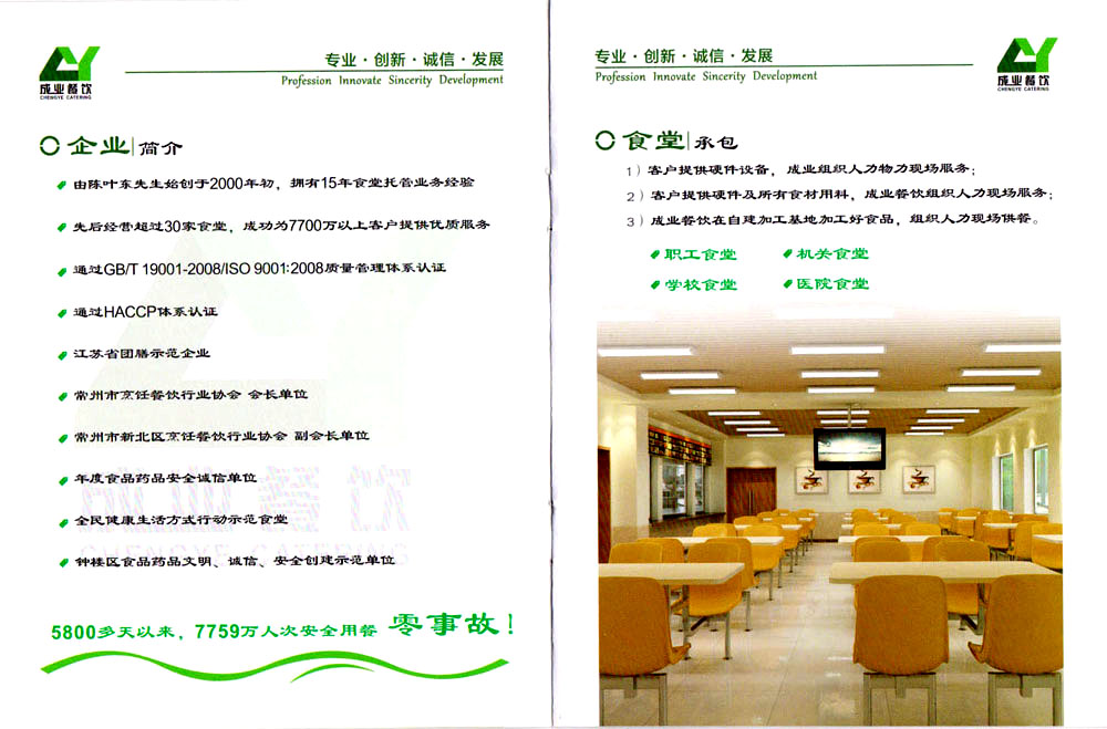 常州市成業(yè)餐飲管理有限公司位于常州市鐘樓區(qū)星港58號(hào),是一家專(zhuān)業(yè)從事中小學(xué)師生營(yíng)養(yǎng)餐制售及配送一體化的企業(yè),自創(chuàng)立以來(lái),始終堅(jiān)持“專(zhuān)業(yè)•創(chuàng)新•誠(chéng)信•發(fā)展”的經(jīng)營(yíng)理念,牢固樹(shù)立“消費(fèi)者利益至上”的行業(yè)價(jià)值觀,以“社會(huì)利益和經(jīng)濟(jì)利益共同實(shí)現(xiàn)”為發(fā)展目標(biāo),深入推進(jìn)各項(xiàng)創(chuàng)建工作,積極響應(yīng),工商協(xié)同、培育品牌、信息共享、完善制度、增強(qiáng)能力,從而更好地服務(wù)于在校就餐師生。 公司董事長(zhǎng)陳葉東先生經(jīng)過(guò)多年的自主經(jīng)營(yíng)歷程,積累經(jīng)驗(yàn),勇于創(chuàng)新,積極進(jìn)取,于2009年3月籌建創(chuàng)立常州市成業(yè)餐飲管理有限公司,注冊(cè)資金518萬(wàn)元整,發(fā)展至今,已經(jīng)營(yíng)管理30多家中小學(xué)、企業(yè)食堂,每天為45000多人次提供優(yōu)質(zhì)放心午餐,擁有良好的經(jīng)營(yíng)信譽(yù)和口碑。 為了更好的適應(yīng)常州學(xué)生營(yíng)養(yǎng)餐供給模式,于2015年2月投建2000平方米中心廚房,同年8月正式投入使用,以先進(jìn)的恒溫配送模式滿(mǎn)足校內(nèi)無(wú)食堂的學(xué)校供餐需求。2018年5月,鑒于公司發(fā)展需求,重新投建350平方米團(tuán)餐加工及配送中心,8月正式投入生產(chǎn),力求成為常州市一流的學(xué)生營(yíng)養(yǎng)餐配送企業(yè)。 基于常州公司的穩(wěn)步發(fā)展,成業(yè)并沒(méi)有滿(mǎn)足現(xiàn)狀,停下腳步。2017年7月以980萬(wàn)注冊(cè)創(chuàng)建鹽城成業(yè)餐飲管理有限公司,為鹽城阜寧教育體系各單位提供食堂管理及師生團(tuán)膳配送服務(wù)。至2019年3月,日供餐人次已達(dá)21000多人次。 2018年7月,成業(yè)餐飲在鹽城地區(qū)相繼啟動(dòng)濱海和響水兩縣的集體用餐配送及食品原料大宗采購(gòu)項(xiàng)目,當(dāng)?shù)叵嚓P(guān)政府部門(mén)對(duì)公司的發(fā)展規(guī)劃及實(shí)施進(jìn)度給予了高度評(píng)價(jià)和支持。