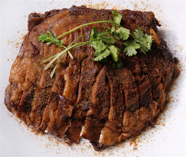 談家的羊肉館位于鄭陸老街上,深秋的一天,記者來到這家羊肉館,穿過大堂走到廚房里,幾名工人正在忙著處理羊肉。余菊華穿著大紅色的薄毛衣,坐在桌子旁,正在麻利地剔著羊肉上的肥油。她是羊肉館的老一代老板娘,如今和老伴談仲興一起,仍天天來店里幫著兒子談旭東打下手。余阿姨隨手拿過一塊長方形的肉皮,用一把小刮刀撳在上面,輕輕地刮著,一團團白白的油被剔了下來,堆在一邊。“我家的羊肉弄得干凈的,腿上的肥肉還有筋筋拉拉的東西,全都要弄掉,就是自己家買了豬肉燒紅燒肉,也不可能弄到這么干凈的,F(xiàn)在的客人都怕胖,所以一定要處理得干干凈凈!庇喟⒁陶f。剔好的肉皮是用來熬成皮凍然后混和著羊肉壓制成羊糕的,只有清理得干凈,沒有一點雜質(zhì),羊糕的質(zhì)量才會好。