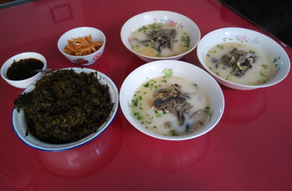 歡迎來孟河老街的八斤面館吃孟河鱔絲面! 這孟河鱔絲面據(jù)說是康熙年間傳下來的,算起來已有三百多年的歷史了,要比常州小籠饅頭、大麻糕一百多年歷史悠久得多。在孟河一帶,做孟河鱔絲面的面館有許多家,就像常州做小籠饅頭、大麻糕的店家一樣的多。 “八斤面館”的孟河鱔絲面是有傳承的,是孟河兩家比較正宗的孟河鱔絲面館之一。孟河鱔絲面制作技藝曾列入新北區(qū)非物質(zhì)文化遺產(chǎn)調(diào)查,調(diào)查時(shí)“八斤面館”的老板巢八斤也提供了有關(guān)資料。 這家小面館取名為“八斤面館”,是因?yàn)槔习逍∶徒邪私铩W哌M(jìn)這片小小的面館,只有兩張八仙桌。只有臺(tái)子上的玻璃臺(tái)刻還有點(diǎn)七十年代的特征,其它地方還都是五、六十年代鄉(xiāng)下家里頭的風(fēng)格。 老板巢八斤祖上三輩都是廚師,現(xiàn)在兒子也在上海做廚師。老板娘原來是上海知青,上山下鄉(xiāng)時(shí)投親靠友來到孟河,后來在孟河與巢八斤結(jié)婚,成家立業(yè)。與在支青大返城時(shí)放棄回大上海的機(jī)會(huì),與老公開了這個(gè)“八斤面館”,用老板娘的話說是"做做白相相的",所以守著這片小店,只想把鱔絲面做好。也不想做大,也不想到常州到上海去開大一點(diǎn)的面館。 這孟河鱔絲面是用一斤有十幾條的“筆梗黃鱔”,先用開水把黃鱔燙熟,然后用竹刀批下二條黃鱔肉,除去骨頭肚腸,切成段后入油鍋里炸酥,再用白湯烹制成為面澆頭。而面湯是用鱔魚骨頭、豬骨等用大鍋猛火煮上三、四個(gè)鐘頭,成為一鍋濃濃的白湯,再進(jìn)行調(diào)味。面條也是用細(xì)細(xì)的銀絲面,大碗寬湯,鮮香味濃,沒有一丁點(diǎn)鱔魚的土腥氣,再加上白胡椒粉,吃到嘴里全身舒坦。
