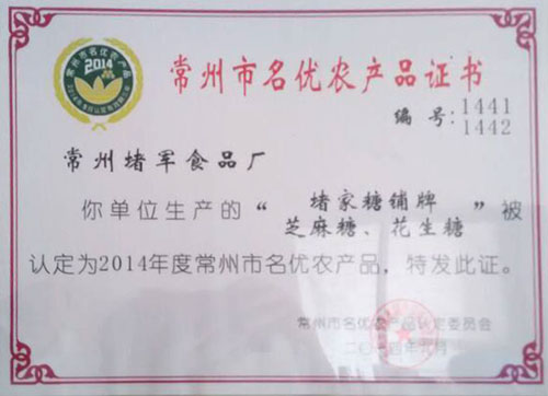 “堵家糖鋪”牌芝麻糖。2013年度生產量已達100噸左右實現(xiàn)銷量額為250萬元,同時本廠的產品已進入“瑞和泰"“好比家”“名仁”常州機場等高端銷售區(qū)域,并與“瑞和泰”形成戰(zhàn)略合作伙伴關系:為瑞和泰貼牌加工生產。 常州堵軍食品廠生產的芝麻糖是以:大米和麥芽用相傳百年歷史的循環(huán)水濾蒸煮法提煉出其中的麥芽糖漿,再用芝麻,花生,桂花,橘皮,面粉為輔料,歷23道工序手工制作而成。它是一種具有營養(yǎng)豐富性和抗衰老性食品。富含蛋白質,脂肪,維生素A,維生素B,鈣鐵鎂,卵磷脂,硫胺素等營養(yǎng)元素。 全麥芽芝麻糖是一種獨具地方特色的大眾性休閑食品。有其獨特的地方性和文化性。無論是逢年過節(jié)還是日常生活都是饋贈親友,款待賓客的首選佳品之一。