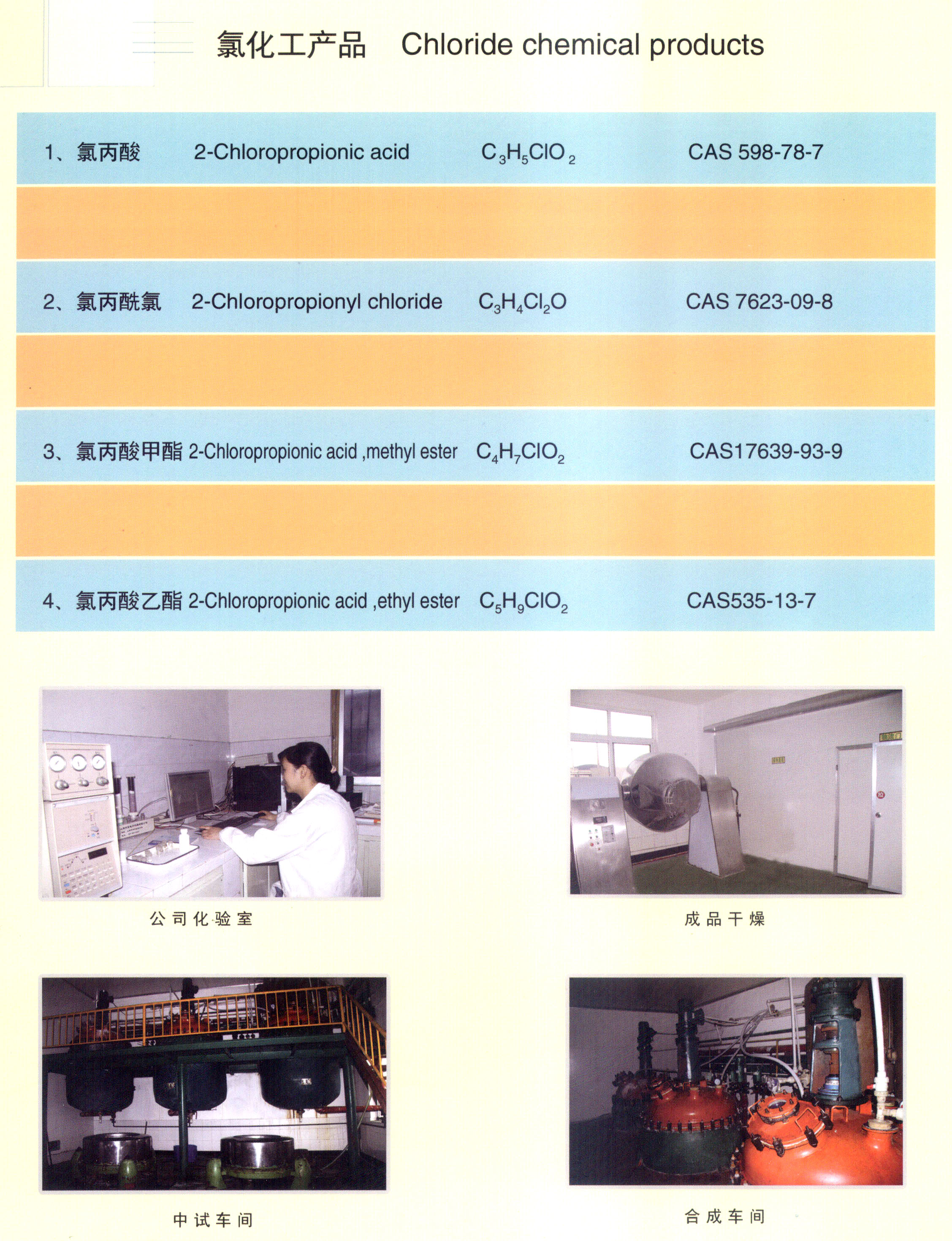 常州市偉強(qiáng)化工有限公司(原武進(jìn)市鄒區(qū)化工廠)創(chuàng)于一九八九年,主要生產(chǎn)經(jīng)營(yíng)精細(xì)化工產(chǎn)品及中間體,形成了生產(chǎn)開(kāi)發(fā)以丙酸為主要原料的多系列產(chǎn)品格局,目前主要產(chǎn)品有DL-2-丙氨酸、2-氯代丙酸、丙酰氯、2-氯丙酰氯、2-氯丙酸甲酯、2-氯丙酸乙酯、異丁酰氯、丁酰氯、戊酰氯等。 我廠坐落在常州西郊,地理位置優(yōu)越,南有312國(guó)道及312省道,北有滬寧高速公路及滬杭大運(yùn)河,交通十分便利.在此,我們將為廣大客戶(hù)提供高品質(zhì)的產(chǎn)品及良好的服務(wù),同時(shí)希望能繼續(xù)得到各位新老客戶(hù)的支持。 我廠已經(jīng)通過(guò)ISO9000質(zhì)量認(rèn)證。 我們將為每位客戶(hù)提供高品質(zhì)的產(chǎn)品和一流的服務(wù). 歡迎您的光顧!