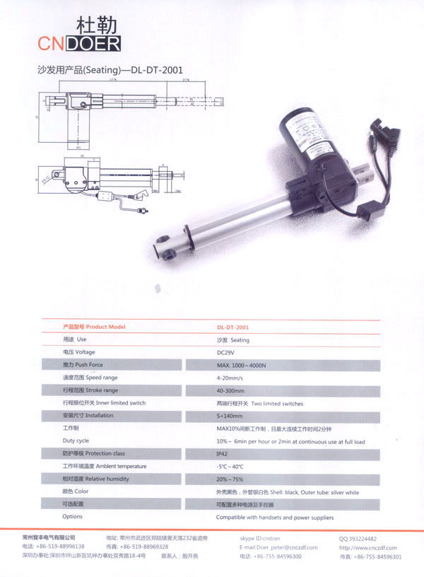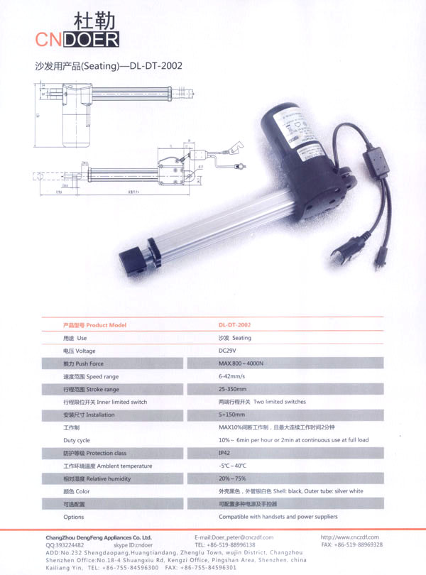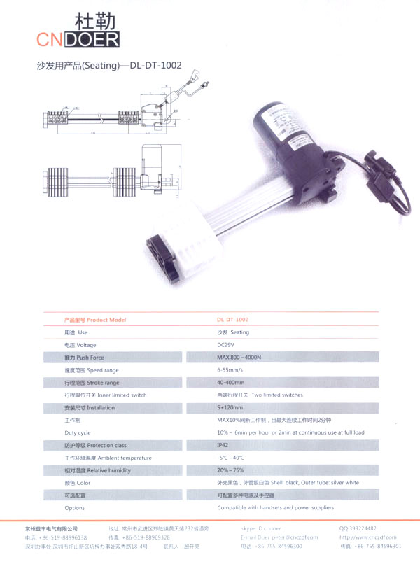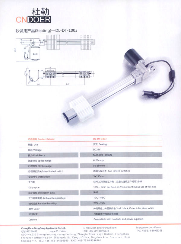 常州登豐電氣有限公司位于人杰地靈的江南古城—常州武進區(qū)鄭陸鎮(zhèn)東青。緊臨常州火車站、滬寧高速公路、312國道、長江港等,交通十分便捷。 公司最早創(chuàng)辦于1989年,歷經(jīng)20多年的艱苦創(chuàng)業(yè),本著“誠信為本、品質至上”的經(jīng)營理念,公司生產(chǎn)的“武微”牌空調電機、“蘇杰”牌電動車電機和采用國外先進技術制作的動力強勁、同時具有過載保護和消音裝置的綠色環(huán)保產(chǎn)品:“登豐”、“聚美”牌食物垃圾處理器。這些產(chǎn)品在全國各地市場均享有較高的知名度。 如今,公司為謀求新的發(fā)展,立足于國內,放眼于國際市場,投入了大量的人力、財力、物力,購置了先進的全自動生產(chǎn)流水線、全自動繞線機和各類精密的測試儀器,多功能隔音房等設施,全新推出了具有美好前景和廣闊市場的主打產(chǎn)品:“杜勒”牌系列線性推桿及各類配套電機。該產(chǎn)品已通過ISO9001認證,產(chǎn)品外觀新穎、制作精良、噪音小、操作靈活簡便,暢銷國內,遠銷國外,被廣泛應用于電動沙發(fā)、醫(yī)療護理床、手術床、按摩椅等眾多領域!岸爬铡碑a(chǎn)品已被越來越多的客戶所青睞和認可! 公司竭誠歡迎各界朋友、新老客戶前來洽談合作,共謀發(fā)展。我們也將不斷開拓創(chuàng)新,提高產(chǎn)品質量,完善售后服務體系,努力打造成為行業(yè)先鋒企業(yè)!