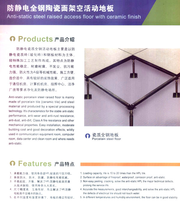 常州天馳活動地板有限公司始創(chuàng)于2010年,原身是常州市武進區(qū)橫林天馳機房地板廠,地處橫林工業(yè)園區(qū),交通便捷。 公司主要生產(chǎn)和銷售各種機房地板,自創(chuàng)立以來,以品質(zhì)第一,信譽第一,服務第一的理念堅持做全國最優(yōu)質(zhì)量。 防靜電高架活動地板是計算機行業(yè)發(fā)展起來的新型鋪地材料,隔離了潮氣,靜電灰塵。最重要的是解決了綜合布線問題,無需預埋管線,可隨時拆卸,搬移,保證了資訊設備完整的優(yōu)點,適應了智能化樓宇中信息自動化技術(shù)對所處環(huán)境的特定要求,避免了廣大客戶的雙重投資,使現(xiàn)代化辦公程度更加高效,辦公場所更加舒適。 公司專業(yè)生產(chǎn)“天馳”系列活動地板,符合國家安全要求,種類完備多樣,其中防靜電瓷質(zhì)高架通路地板除具有普通瓷質(zhì)的裝飾和實用性外,其耐磨,防水,防火功能優(yōu)于其他同類產(chǎn)品,深受客戶歡迎。 公司大力發(fā)展國內(nèi)外銷售業(yè)務,多次中標國內(nèi)重點裝飾工程,例:湖南電視臺,寧波縣變電站,鞍山市120急救指揮中心等。 公司將一如既往開發(fā)和制造一流的產(chǎn)品,愿與廣大有識之士合作發(fā)展,共創(chuàng)美好未來!