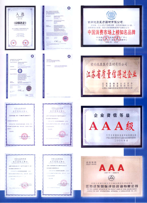 常州悅康醫(yī)療器材有限公司(原常州市鶴壽醫(yī)用器材廠) 是專業(yè)生產(chǎn)一次性使用無菌醫(yī)療器械的股份制企業(yè)。本公司始建于1986年,現(xiàn)公司面積32000平方米,建筑面積為18500平方米。其中十萬級(jí)潔凈區(qū)面積為7500平方米,目前擁有固定資產(chǎn)3000余萬元,現(xiàn)有員工380人,主要生產(chǎn)一次性使用輸液(血)器、一次性使用注射器、一次性使用靜脈針、一次性使用注射針及一次性使用高分子醫(yī)療制品,年生產(chǎn)能力超2億套,產(chǎn)品銷售歷年處于供不應(yīng)求的好勢(shì)頭,銷售覆蓋全國28個(gè)省市、市、自治區(qū)1000多家醫(yī)療單位,受到用戶好評(píng),成為江蘇省生產(chǎn)一次性醫(yī)療用品的重點(diǎn)企業(yè)。 本公司具有自營進(jìn)出口經(jīng)營權(quán),通過ISO9002質(zhì)量管理體系和CE認(rèn)證。我廠將以優(yōu)異的質(zhì)量、合理的價(jià)格、及時(shí)供貨為各單位提供良好的服務(wù)和方便。