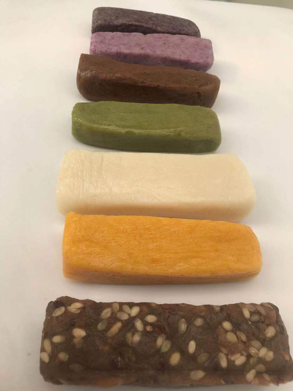腳踏糕本名“年糕”,按常州周邊地區(qū)的風俗習慣,在春季前夕,各家各戶都要蒸年糕,吃年糕。“糕”諧音“高”,過年吃年糕被賜予“年年高”,一年高一年,鋒吉祥之意,表達這人們對未來美好生活的憧憬和良好的祝愿。今天小編要帶大家的就是一家至今保持著傳統(tǒng)手工制作的鈺鋒糕點坊。 鈺鋒糕點坊位于常州鄭陸鎮(zhèn)三皇廟范家莊,一個比較偏僻的村莊,雖然這家作坊不大,但香糯絲滑,軟糯適中,韌勁十足的腳踏糕吸引了無數(shù)的食客。制作一條腳踏糕要從淘米,浸泡,碾粉,鋪粉,一層一層的鋪下去,需要無數(shù)道制作工序,這些都是店主孫煥公公老周,憑著幾十年的經(jīng)驗,加上店主孫煥從不馬虎的決心! 這“腳踏”也并非赤腳上陣,而是把蒸好的糕倒入早以準備好的框子里,用布包裹好,上面再用薄膜包好,再蓋上布,再換上專門腳踏的布鞋,踩的時候要勻稱,左右腳要配合好,不然糕會高高低低,不平整,最后再拿蠟燭線拆成一條小長條,再拿帶包裝好,如此又香又糯的腳踏糕就大功告成了。 店主孫煥為了讓更多的人認識和了解常州腳踏糕的傳統(tǒng)文化和美食,她在傳統(tǒng)工藝中增加了適合現(xiàn)代文化的多種口味,她在糕里加入南瓜,紫薯,老紅糖,大麥汁,血糯米,核桃,葡萄干,紅棗等食材,做出五顏六色,純天然的口味,深受食客們的喜愛,不管是送人還是自己吃都非常新穎。 (重陽糕)重陽糕的由來,九九重陽,九是陽數(shù),也是陽數(shù)中最大的數(shù),九月初九,兩九相重,為之重陽,古人有重陽登高的習俗。高于糕同意,寓意人活九十九,生活步步高,秋景勝春光,夕陽無限好。夕陽紅成了老人對自己美好的祝愿和希望,所以從某種意義上來講它“祝壽糕”“長壽糕”重陽糕在常州地區(qū)是家喻戶曉的,下面小編帶你去一家至今保持傳統(tǒng)手工制作的鈺鋒糕點坊看一下吧。鈺鋒糕點坊位于常州市天寧區(qū)鄭陸鎮(zhèn)三皇廟范家莊,偏僻的小村莊,雖然有點偏僻,但是每到重陽節(jié)到來,每天還是有很多食客來訂購和購買店主孫煥做的多種口味的重陽糕。要想做出松軟香糯的重陽糕,原材料和糯米和梗米的配比也很重要,調(diào)整好比例開始淘米,浸泡,釓粉,放入糖攪拌,篩粉,糕底部放上荷葉,中間的餡心都是孫煥自己熬制,口感,香糯松軟,店主孫煥為了吸引更多現(xiàn)代年輕人,她在粉里加入南瓜,紫薯,紅糖,血糯等,色彩搭配很出跳,吸引來了很多食客,孫煥2019年開始自愿捐贈重陽糕給敬老院,她說這樣的公益活動自己很喜歡,雖然金額不大,缺表達了她的一份心意,并稱這樣的公益活動她每年都會做。