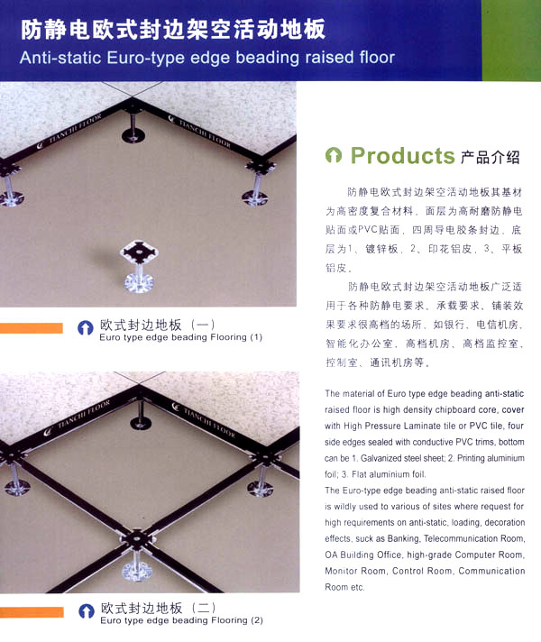 常州天馳活動(dòng)地板有限公司始創(chuàng)于2010年,原身是常州市武進(jìn)區(qū)橫林天馳機(jī)房地板廠,地處橫林工業(yè)園區(qū),交通便捷。 公司主要生產(chǎn)和銷(xiāo)售各種機(jī)房地板,自創(chuàng)立以來(lái),以品質(zhì)第一,信譽(yù)第一,服務(wù)第一的理念堅(jiān)持做全國(guó)最優(yōu)質(zhì)量。 防靜電高架活動(dòng)地板是計(jì)算機(jī)行業(yè)發(fā)展起來(lái)的新型鋪地材料,隔離了潮氣,靜電灰塵。最重要的是解決了綜合布線(xiàn)問(wèn)題,無(wú)需預(yù)埋管線(xiàn),可隨時(shí)拆卸,搬移,保證了資訊設(shè)備完整的優(yōu)點(diǎn),適應(yīng)了智能化樓宇中信息自動(dòng)化技術(shù)對(duì)所處環(huán)境的特定要求,避免了廣大客戶(hù)的雙重投資,使現(xiàn)代化辦公程度更加高效,辦公場(chǎng)所更加舒適。 公司專(zhuān)業(yè)生產(chǎn)“天馳”系列活動(dòng)地板,符合國(guó)家安全要求,種類(lèi)完備多樣,其中防靜電瓷質(zhì)高架通路地板除具有普通瓷質(zhì)的裝飾和實(shí)用性外,其耐磨,防水,防火功能優(yōu)于其他同類(lèi)產(chǎn)品,深受客戶(hù)歡迎。 公司大力發(fā)展國(guó)內(nèi)外銷(xiāo)售業(yè)務(wù),多次中標(biāo)國(guó)內(nèi)重點(diǎn)裝飾工程,例:湖南電視臺(tái),寧波縣變電站,鞍山市120急救指揮中心等。 公司將一如既往開(kāi)發(fā)和制造一流的產(chǎn)品,愿與廣大有識(shí)之士合作發(fā)展,共創(chuàng)美好未來(lái)!