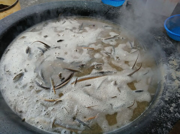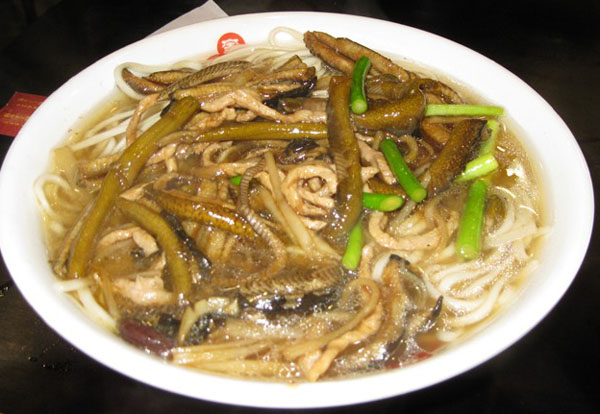 常州新北區(qū)孟河公陽(yáng)小吃店從事鱔絲面23年,經(jīng)營(yíng)面積100平方米,黃鱔全是野生,面湯采用高湯制作(鱔魚(yú)湯),下面的時(shí)候先用開(kāi)水把黃鱔燙熟,然后用竹刀批下二條黃鱔肉,除去骨頭肚腸,切成段后入油鍋里炸酥,再用白湯烹制成為面澆頭。而面湯是用鱔魚(yú)骨頭、豬骨等用大鍋猛火煮上三、四個(gè)鐘頭,成為一鍋濃濃的白湯,再進(jìn)行調(diào)味,吃到嘴里全身舒坦。