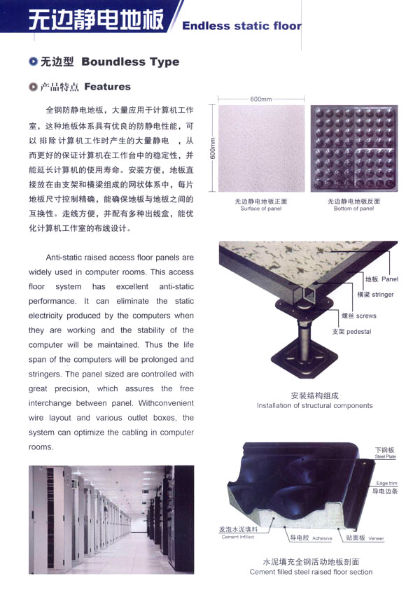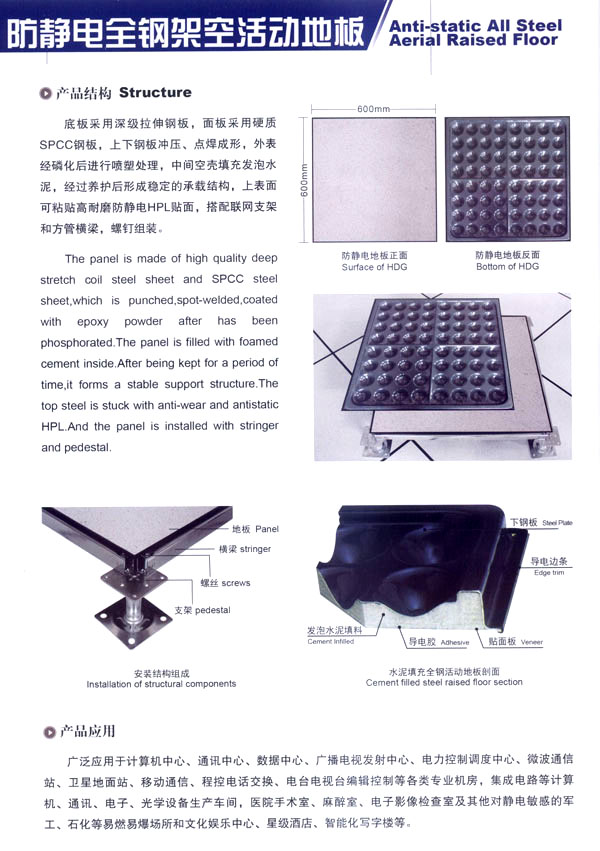 常州星峰活動(dòng)地板有限公司地處常州市橫林鎮(zhèn)前豐工業(yè)園區(qū),東鄰無錫。南有312國道。京杭大運(yùn)河、北臨滬寧高速公路,交通便捷。本公司資質(zhì)較深,是生產(chǎn)鋼質(zhì)抗靜電地板的專業(yè)廠家。十多年來積累了豐富的經(jīng)驗(yàn)及雄厚的經(jīng)濟(jì)實(shí)力。并以優(yōu)質(zhì)的產(chǎn)品、優(yōu)良的售后服務(wù)贏得了用戶的一致好評。 本公司生產(chǎn)產(chǎn)品廣泛應(yīng)用于電子計(jì)算機(jī)房、通訊機(jī)房、電視發(fā)射臺(tái)、軍事指揮站、各類實(shí)驗(yàn)室、辦公室及一些管線鋪設(shè)比較集中與要求防靜電場所,市場網(wǎng)絡(luò)縱橫江蘇、山東、福建、甘肅、上海、北京、安徽、浙江、河南等地。