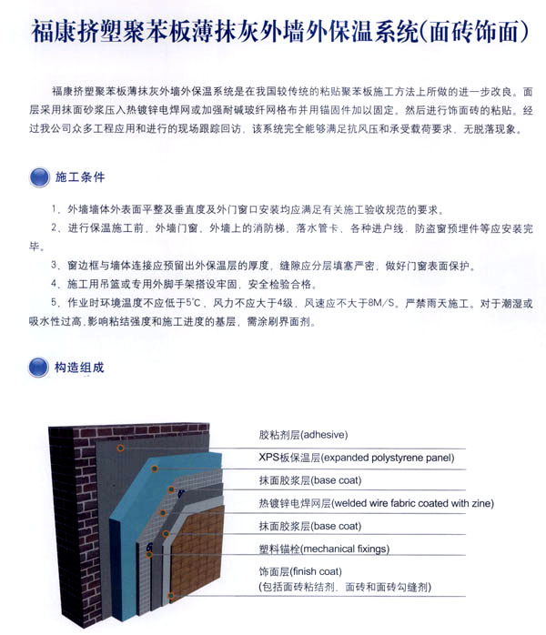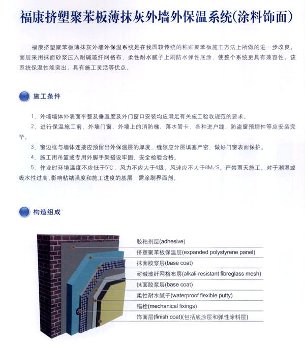 常州市?敌滦徒ú挠邢薰臼且匝兄崎_發(fā)、生產(chǎn)、銷售、施工、技術(shù)服務(wù)為一體的化學(xué)建筑材料的專業(yè)企業(yè),通過與歐洲著 名建筑材料公司和國內(nèi)權(quán)威科研機(jī)構(gòu)合作,并聘請國家級專家為技術(shù)顧問,開發(fā)出適合我國市場的福康EPS、XPS及聚苯顆粒外墻外保溫節(jié)能系統(tǒng)。 公司的生產(chǎn)線全部采用國內(nèi)先進(jìn)的電腦控制自動(dòng)化設(shè)備,配備了專業(yè)的實(shí)驗(yàn)中心,并且采用進(jìn)口的可再分散乳膠粉為基料,確保?低鈮ν獗毓(jié)能系統(tǒng)具有性能優(yōu)異、安全可靠,綠色環(huán)保、適用性強(qiáng)的高品質(zhì)特點(diǎn)。 公司開發(fā)的\'?低鈮ν獗叵到y(tǒng)\'被列為江蘇省科技成果推廣項(xiàng)目。整個(gè)生產(chǎn)流程依照質(zhì)量體系的要求,實(shí)行嚴(yán)格的監(jiān)控和檢測,為生產(chǎn)優(yōu)質(zhì)產(chǎn)品提供保證。高品質(zhì)的?低鈮ν獗叵到y(tǒng),提供從熱工設(shè)計(jì)、產(chǎn)品開發(fā)、生產(chǎn)銷售及工程施工全程服務(wù)的一體化解決方案。 公司本著“綠色環(huán)保、節(jié)約能源、造福人類”的理念。用我們一流的產(chǎn)品和優(yōu)秀的服務(wù),打造出一個(gè)個(gè)節(jié)能康居示范工程,為人類營造出舒適健康的居住環(huán)境。我們愿為中國節(jié)能事業(yè)的發(fā)展積極努力,更上一層樓。 公司組建高效的生產(chǎn)經(jīng)營管理模式,設(shè)立專業(yè)技術(shù)服務(wù)機(jī)構(gòu)。配備售后的優(yōu)質(zhì)服務(wù)。實(shí)行原材料、運(yùn)輸、安裝一條龍服務(wù)。經(jīng)本公司施工之后,貴公司可以直接批涂料、裝門窗、貼瓷磚,保證絕無任何質(zhì)量問題。
