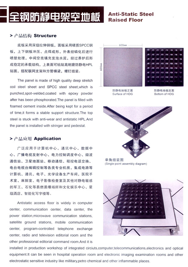 常州市蘇杰機(jī)房地板有限公司是高架地板專業(yè)制造商,專業(yè)從事防靜電地板、OA網(wǎng)絡(luò)地板等各種系列高架地板的研發(fā)、制造和銷售,并提供各種機(jī)房地面和智能化辦公區(qū)地面的整體解決方案。 公司廠區(qū)面積30000平方米,擁有全鋼地板生產(chǎn)線兩條,木基、硫酸鈣基地板生產(chǎn)線各一條,年綜合產(chǎn)能100萬平方米。生產(chǎn)蘇杰牌防靜電地板系列和蘇杰牌網(wǎng)絡(luò)地板系列,主要產(chǎn)品有全鋼防靜電架空地板、全鋼OA網(wǎng)絡(luò)地板、瓷磚貼面防靜電地板、硫酸鈣防靜電地板、木基防靜電地板、鋁合金防靜電地板、防靜電通風(fēng)地板等。 蘇杰人秉承“科技先導(dǎo)、市場為本、持續(xù)發(fā)展”的企業(yè)發(fā)展觀,堅(jiān)持“以先進(jìn)技術(shù)裝備為基礎(chǔ),以現(xiàn)代化管理為依托,以專業(yè)化服務(wù)為保障”的宗旨,使公司不斷發(fā)展壯大成為現(xiàn)代化的企業(yè)。 蘇杰人堅(jiān)持“嚴(yán)謹(jǐn)思考、嚴(yán)密操作、嚴(yán)格檢查、嚴(yán)肅驗(yàn)證”的品質(zhì)理念和“以客戶為中心”的服務(wù)理念,始終致力于產(chǎn)品的技術(shù)創(chuàng)新和質(zhì)量創(chuàng)優(yōu),為用戶提供優(yōu)質(zhì)的產(chǎn)品、合理的價(jià)格和貼心的服務(wù)。 常州市蘇杰機(jī)房地板有限公司將不斷開發(fā)和制造一流的產(chǎn)品,吸引和培養(yǎng)一流的人才,提供和完善一流的服務(wù),樹立和保持一流的形象,與時(shí)俱進(jìn),共謀發(fā)展。