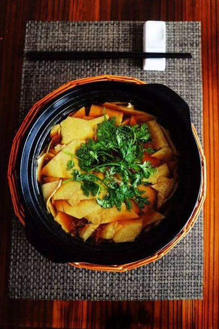 油湯橫山橋百葉 Q嫩爽滑、豆香濃郁的百葉深受老常州人的喜愛,在常州以橫山橋的最為知名。采用太湖灣農(nóng)家散養(yǎng)的土雞熬湯,雞油透亮,雞湯香醇,滿滿一鍋雞味滲透在百葉之中,美味可見一斑。這是一道跨越常州地域,卻結合常州各地物產(chǎn)的佳肴,也讓往來食客深深地感受到了太湖美,常州更美。