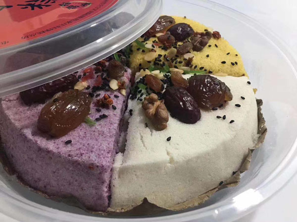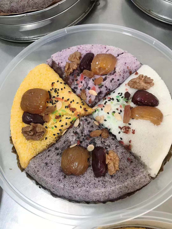 腳踏糕本名“年糕”,按常州周邊地區(qū)的風(fēng)俗習(xí)慣,在春季前夕,各家各戶都要蒸年糕,吃年糕。“糕”諧音“高”,過年吃年糕被賜予“年年高”,一年高一年,鋒吉祥之意,表達(dá)這人們對未來美好生活的憧憬和良好的祝愿。今天小編要帶大家的就是一家至今保持著傳統(tǒng)手工制作的鈺鋒糕點坊。 鈺鋒糕點坊位于常州鄭陸鎮(zhèn)三皇廟范家莊,一個比較偏僻的村莊,雖然這家作坊不大,但香糯絲滑,軟糯適中,韌勁十足的腳踏糕吸引了無數(shù)的食客。制作一條腳踏糕要從淘米,浸泡,碾粉,鋪粉,一層一層的鋪下去,需要無數(shù)道制作工序,這些都是店主孫煥公公老周,憑著幾十年的經(jīng)驗,加上店主孫煥從不馬虎的決心! 這“腳踏”也并非赤腳上陣,而是把蒸好的糕倒入早以準(zhǔn)備好的框子里,用布包裹好,上面再用薄膜包好,再蓋上布,再換上專門腳踏的布鞋,踩的時候要勻稱,左右腳要配合好,不然糕會高高低低,不平整,最后再拿蠟燭線拆成一條小長條,再拿帶包裝好,如此又香又糯的腳踏糕就大功告成了。 店主孫煥為了讓更多的人認(rèn)識和了解常州腳踏糕的傳統(tǒng)文化和美食,她在傳統(tǒng)工藝中增加了適合現(xiàn)代文化的多種口味,她在糕里加入南瓜,紫薯,老紅糖,大麥汁,血糯米,核桃,葡萄干,紅棗等食材,做出五顏六色,純天然的口味,深受食客們的喜愛,不管是送人還是自己吃都非常新穎。 (重陽糕)重陽糕的由來,九九重陽,九是陽數(shù),也是陽數(shù)中最大的數(shù),九月初九,兩九相重,為之重陽,古人有重陽登高的習(xí)俗。高于糕同意,寓意人活九十九,生活步步高,秋景勝春光,夕陽無限好。夕陽紅成了老人對自己美好的祝愿和希望,所以從某種意義上來講它“祝壽糕”“長壽糕”重陽糕在常州地區(qū)是家喻戶曉的,下面小編帶你去一家至今保持傳統(tǒng)手工制作的鈺鋒糕點坊看一下吧。鈺鋒糕點坊位于常州市天寧區(qū)鄭陸鎮(zhèn)三皇廟范家莊,偏僻的小村莊,雖然有點偏僻,但是每到重陽節(jié)到來,每天還是有很多食客來訂購和購買店主孫煥做的多種口味的重陽糕。要想做出松軟香糯的重陽糕,原材料和糯米和梗米的配比也很重要,調(diào)整好比例開始淘米,浸泡,釓粉,放入糖攪拌,篩粉,糕底部放上荷葉,中間的餡心都是孫煥自己熬制,口感,香糯松軟,店主孫煥為了吸引更多現(xiàn)代年輕人,她在粉里加入南瓜,紫薯,紅糖,血糯等,色彩搭配很出跳,吸引來了很多食客,孫煥2019年開始自愿捐贈重陽糕給敬老院,她說這樣的公益活動自己很喜歡,雖然金額不大,缺表達(dá)了她的一份心意,并稱這樣的公益活動她每年都會做。