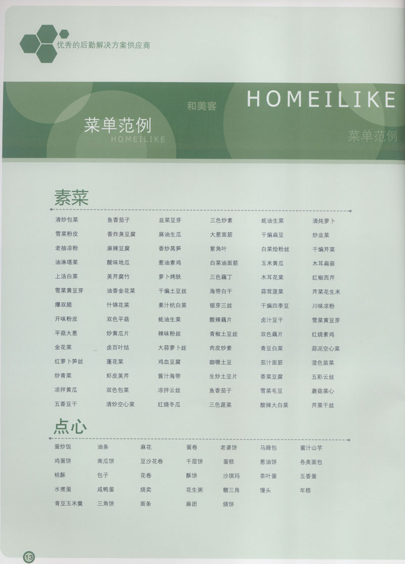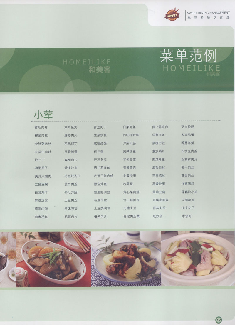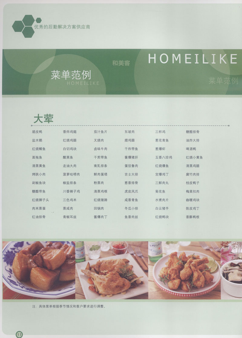 常州市思味特餐飲有限公司是一家專業(yè)從事企事業(yè)后勤服務(wù)的有限責(zé)任公司,公司從承包食堂起步,逐漸發(fā)展為經(jīng)營團(tuán)膳承包、營養(yǎng)送餐、生活區(qū)管理、連鎖餐廳的綜合型企業(yè)。2008年公司斥資100萬元,在常州興建了可以同時提供3000餐膳食的中央廚房,重點(diǎn)打造“和美客”后勤服務(wù)品牌,全力為企事業(yè)單位解決后勤后顧之憂。 到目前為止,我們合作成功的企事業(yè)單位超過50多家,服務(wù)人數(shù)突破15萬,合作單位包括國家機(jī)關(guān)、國有企業(yè)、三資企業(yè)、民營企業(yè)、學(xué)校、醫(yī)院等,其中不乏國際知名品牌公司。 和美客愿為更多的國內(nèi)外企事業(yè)單位及機(jī)關(guān)團(tuán)體分憂解難,從廚房設(shè)計、菜品配送、團(tuán)膳承包、到生活區(qū)管理等提供全方位的服務(wù)。