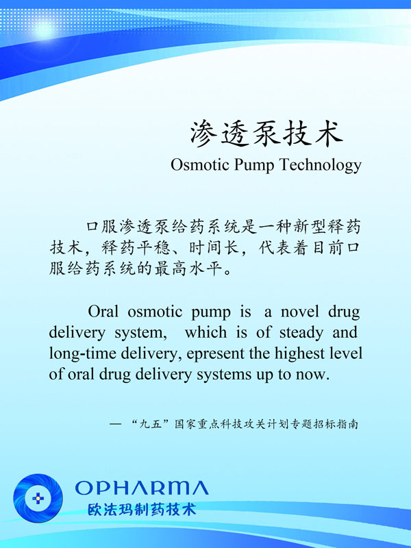 常州歐法瑪制藥技術(shù)有限公司位于長江三角洲黃金腹地——常州。地理位置優(yōu)越、交通便捷,由鐵路、公路、水路、民航形成了一張立體交叉的交通網(wǎng)絡(luò)。 公司創(chuàng)建于2013年,是一家集研發(fā)、生產(chǎn)和銷售為一體,專業(yè)從事高速激光打孔機(jī)、滲透泵制劑研發(fā)、生產(chǎn)和銷售。目前公司擁有員工20人,科技研發(fā)和技術(shù)人員占員工總數(shù)80%以上,其中本科以上學(xué)歷占80%以上。 公司始建以來,以前瞻的科學(xué)規(guī)劃,通過自主研發(fā),解決了高速激光打孔機(jī)諸多的世界難題,使之達(dá)到40片/秒以上且精確打孔的國際領(lǐng)先水平;同時開發(fā)廢片自動識別、剔除功能,以滿足客戶的實際所需。公司與瑞士等國家研究機(jī)構(gòu)的科技合作,以高速激光打孔機(jī)為基礎(chǔ),建設(shè)了滲透泵制劑研發(fā)和中試生產(chǎn)車間,開發(fā)了多種藥物的滲透泵制劑,形成了從關(guān)鍵設(shè)備研制,新制劑開發(fā)、工藝配套,到批量生產(chǎn)測試的滲透泵制劑開發(fā)全過程技術(shù)團(tuán)隊和研究設(shè)施。公司瞄準(zhǔn)現(xiàn)代新型釋藥系統(tǒng),吸收國內(nèi)外高端人才,努力開拓控緩釋技術(shù)、靶向給藥技術(shù)及智能給藥技術(shù)。 2013年公司被評為黑馬大賽“創(chuàng)業(yè)組50強(qiáng)”、“領(lǐng)軍人才創(chuàng)業(yè)重點企業(yè)”;2014公司通過了IS09001-2008質(zhì)量管理體系認(rèn)證、CE認(rèn)證、江蘇省質(zhì)量信得過企業(yè)。