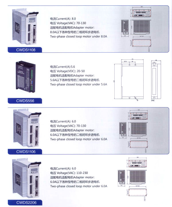 常州創(chuàng)偉電機電器有限公司成立于1995年,是一家專業(yè)從事步進電機及驅動控制生產、研發(fā)的企業(yè),F(xiàn)已擁有一批富有經驗的生產和開發(fā)隊伍。企業(yè)在多年的發(fā)展過程中,為全國各地各行業(yè)提供了大量質優(yōu)價廉的步進電機及控制產品。應用領域涉及機器人、音樂噴泉、數(shù)控機床設備、工業(yè)電子自動化設備、醫(yī)療器械、廣告器材、舞臺燈光設備、印刷設備、紡織機械、計算機外部應用設備等等。 公司產品先后通過ISO9001質量管理體系認證,RoHS認證,CE認證。公司現(xiàn)擁有全自動繞線機、調壓式充磁機、萬能外圓磨床、數(shù)控機床等設備50余臺,固定資產3000萬元,員工總數(shù)200余人,其中技術人員25人。年生產各類電機100萬臺。依靠齊全的檢測設備、完善的檢測手段、嚴格的質量標準,我們一直致力于提高產品的質量和性能。對于每一個客戶我們都提供自始自終的技術服務和產品售后服務。 我公司的主要產品有20BH系列、28BH系列、35BH系列、39BH系列、42BH系列、42BHH系列、57BH圓形系列、57BHH方形系列、60BHH方形系列、86BH圓形系列、86BHH方形系列,以及110BHH系列的四相(二相)混合式步進電。CW60BL、CW63BL、CW70BL、CW92BL系列無刷電機也相繼上市。另外步進電機驅動器CW215、CW230、CW5045、CW8060、CW6060AC、CW1108以及全新數(shù)字式驅動器CWD230、CWD556、CWD860H、CW2M2208、CW3M2208和閉環(huán)電機驅動器CWDS556,CWDS660,CWDS860H,CWDS880L,CWDS1108,CWDS2206等系列也暢銷全球。另外本公司也可對外承接各種步進電機及相關工控系統(tǒng)的應用系統(tǒng)工程。 熱忱歡迎國內外客商前來洽談及合作。