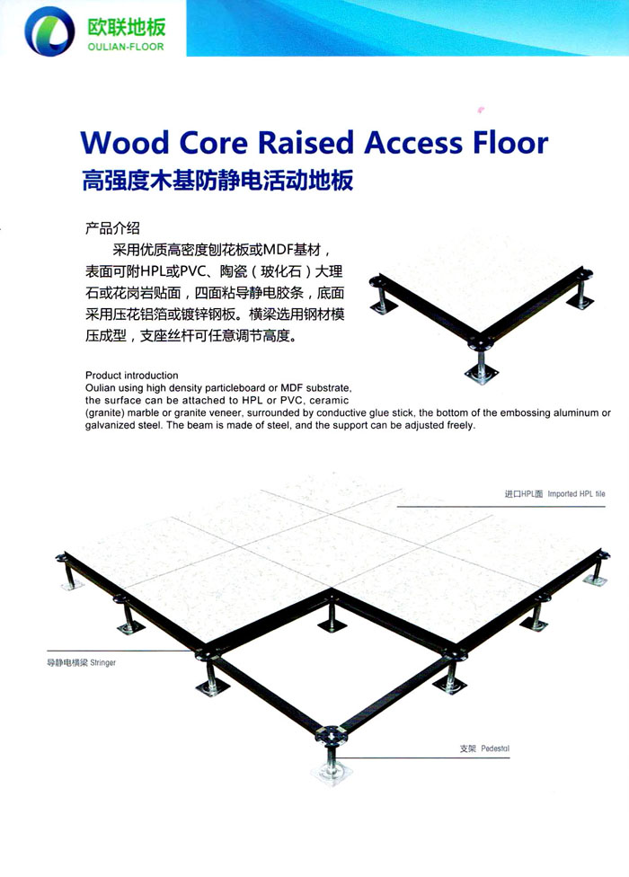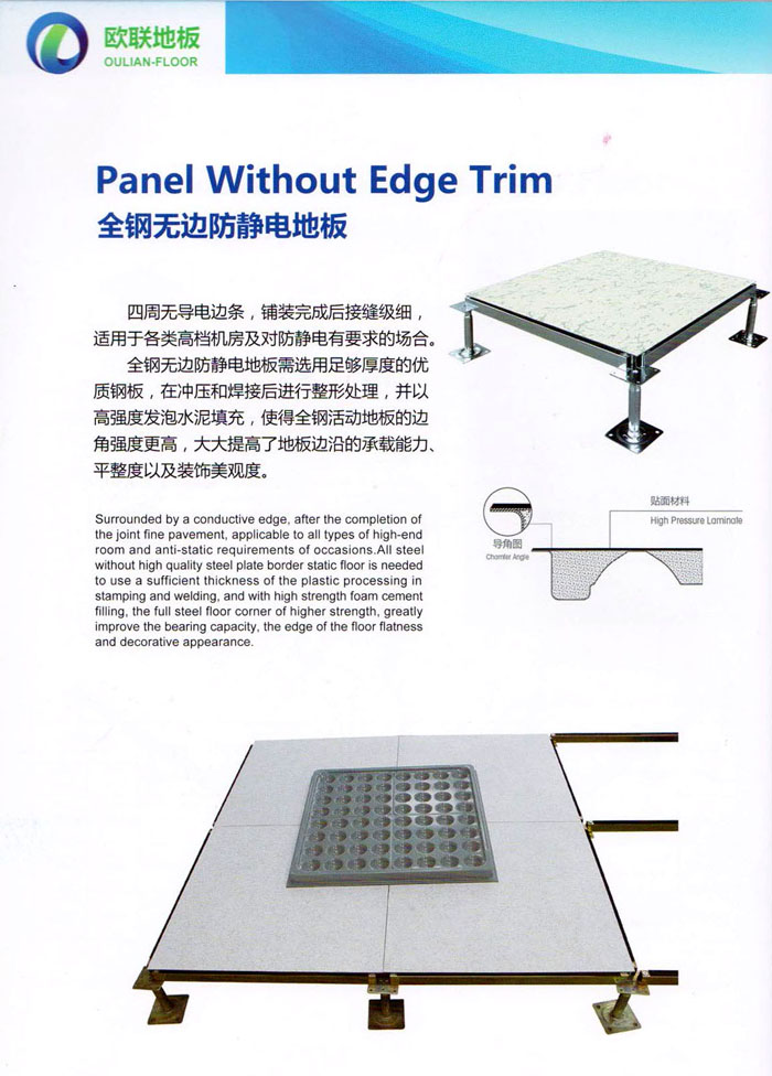 防靜電高架活動(dòng)地板、全鋼地板、陶瓷地板是計(jì)算機(jī)行業(yè)發(fā)展起來(lái)的新型鋪地材料,隔離了潮氣、靜電灰塵,最重要的是解決了綜合布線問(wèn)題,無(wú)需預(yù)埋管線,可隨時(shí)拆卸、搬移,保證了資訊設(shè)備完整的優(yōu)點(diǎn),適應(yīng)了智能化樓宇中信息自動(dòng)化技術(shù)對(duì)所處環(huán)境的特定要求,避免了廣大客戶的雙重投資,使現(xiàn)代化辦公程度更加高效,辦公場(chǎng)所更加舒適。 “歐聯(lián)”系列全鋼地板,符合國(guó)家安全要求,種類完備多樣,其中防靜電陶瓷地板、硫酸鈣地板等除具有普通瓷質(zhì)的裝飾和實(shí)用性外,其耐磨、防水、防火功能優(yōu)于其它同類產(chǎn)品,防靜電系列地板,能切合不同客戶的要求,其靈活的配置,深受客戶歡迎,不同材質(zhì)的地板結(jié)構(gòu)使設(shè)計(jì)師的設(shè)計(jì)空間比傳統(tǒng)的更加廣闊自由和善變。 公司大力發(fā)展國(guó)內(nèi)外銷售業(yè)務(wù),多次中標(biāo)國(guó)內(nèi)重點(diǎn)工程 ,例:哈爾濱醫(yī)科大學(xué)、山東大學(xué)、上海普通機(jī)場(chǎng)等。 公司將一如既往開(kāi)發(fā)和制造一流的產(chǎn)品,愿與廣大有識(shí)之士合作發(fā)展,共創(chuàng)美好未來(lái)。