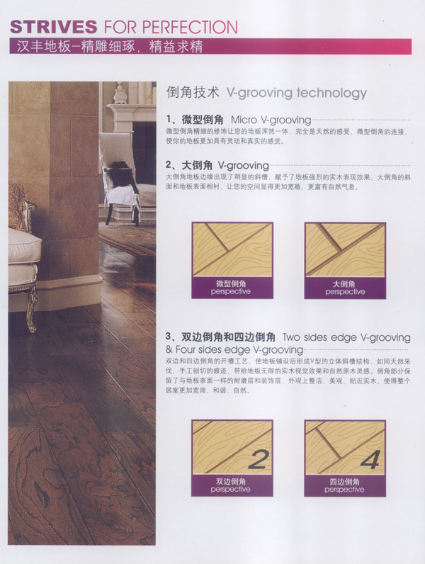 常州漢豐裝飾材料有限公司是一家涉及強化地板制造、屏風(fēng)鋁材生產(chǎn)、進出口貿(mào)易的大型公司。2001年公司投入重資.全面引進世界頂級一體化自動流水生產(chǎn)線和具有國際先進水準(zhǔn)的德國權(quán)威木地板生產(chǎn)技術(shù),興建強化地板生產(chǎn)基地。多年以來.一直不斷加強生產(chǎn)設(shè)備、廠房基礎(chǔ)投入,目前公司年生產(chǎn)強化地板能力已經(jīng)達到了500萬平方米,步入國內(nèi)一流行列,具備了雄厚的國際競爭力。 漢豐地板以奉獻生活中最完美的地板為發(fā)展目標(biāo),時尚流行的設(shè)計風(fēng)格和多樣化的產(chǎn)品類型,贏得了市場的廣泛贊譽和肯定。產(chǎn)品嚴(yán)格按照歐洲標(biāo)準(zhǔn)檢測強化木地板的各項性能指標(biāo).達到百分百的國際技術(shù)標(biāo)準(zhǔn),確保了每一塊地板都有著上乘品質(zhì),是綠色環(huán)保的好地板。并先后通過了Isc)9001國際質(zhì)量管理體系認(rèn)證,IS014001國際環(huán)境管理體系認(rèn)證.中國環(huán)境標(biāo)志產(chǎn)品認(rèn)證,深得用戶的一致好評,是寫字樓、商場、大型超市、學(xué)校、建筑樓宇、娛樂場所、家用私宅等鋪裝的首選地板。