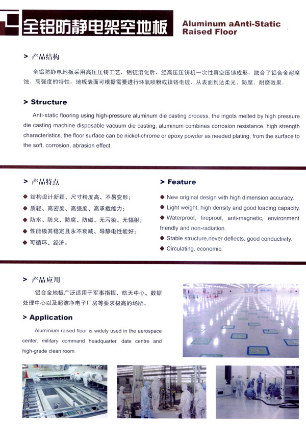常州市蘇杰機(jī)房地板有限公司是高架地板專業(yè)制造商,專業(yè)從事防靜電地板、OA網(wǎng)絡(luò)地板等各種系列高架地板的研發(fā)、制造和銷(xiāo)售,并提供各種機(jī)房地面和智能化辦公區(qū)地面的整體解決方案。 公司廠區(qū)面積30000平方米,擁有全鋼地板生產(chǎn)線兩條,木基、硫酸鈣基地板生產(chǎn)線各一條,年綜合產(chǎn)能100萬(wàn)平方米。生產(chǎn)蘇杰牌防靜電地板系列和蘇杰牌網(wǎng)絡(luò)地板系列,主要產(chǎn)品有全鋼防靜電架空地板、全鋼OA網(wǎng)絡(luò)地板、瓷磚貼面防靜電地板、硫酸鈣防靜電地板、木基防靜電地板、鋁合金防靜電地板、防靜電通風(fēng)地板等。 蘇杰人秉承“科技先導(dǎo)、市場(chǎng)為本、持續(xù)發(fā)展”的企業(yè)發(fā)展觀,堅(jiān)持“以先進(jìn)技術(shù)裝備為基礎(chǔ),以現(xiàn)代化管理為依托,以專業(yè)化服務(wù)為保障”的宗旨,使公司不斷發(fā)展壯大成為現(xiàn)代化的企業(yè)。 蘇杰人堅(jiān)持“嚴(yán)謹(jǐn)思考、嚴(yán)密操作、嚴(yán)格檢查、嚴(yán)肅驗(yàn)證”的品質(zhì)理念和“以客戶為中心”的服務(wù)理念,始終致力于產(chǎn)品的技術(shù)創(chuàng)新和質(zhì)量創(chuàng)優(yōu),為用戶提供優(yōu)質(zhì)的產(chǎn)品、合理的價(jià)格和貼心的服務(wù)。 常州市蘇杰機(jī)房地板有限公司將不斷開(kāi)發(fā)和制造一流的產(chǎn)品,吸引和培養(yǎng)一流的人才,提供和完善一流的服務(wù),樹(shù)立和保持一流的形象,與時(shí)俱進(jìn),共謀發(fā)展。