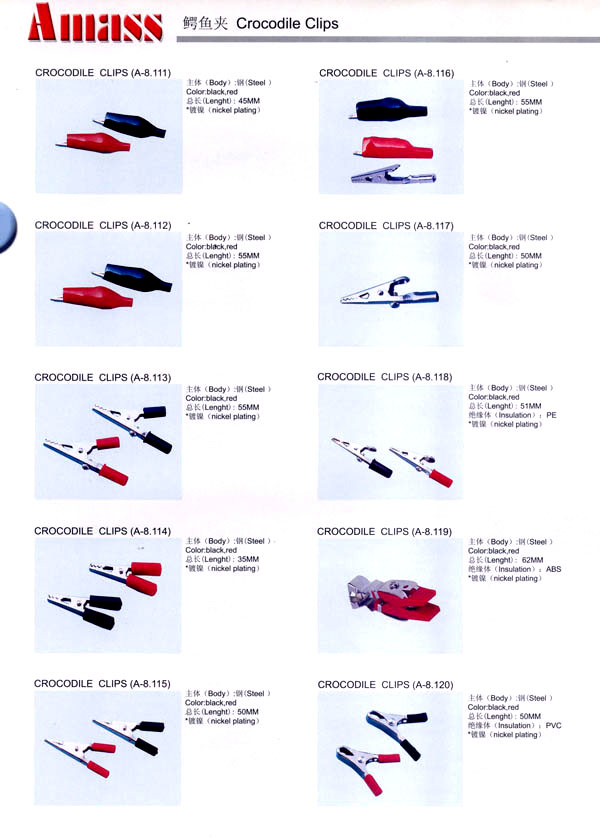 本公司專業(yè)生產(chǎn)各類香蕉插頭,香蕉插座,接線柱,電瓶夾,鱷魚夾,測試導(dǎo)線,測試筆等。產(chǎn)品分2mm/2.5mm/3mm/3.5mm/4mm五大系列,百余種款式, 各種香蕉插廣泛用于儀器、儀表、電力測試、教學(xué)、玩具,視聽設(shè)備、醫(yī)療儀器,保健產(chǎn)品等領(lǐng)域。公司技術(shù)力量雄厚,生產(chǎn)工藝先進(jìn),產(chǎn)品遠(yuǎn)銷港、臺、歐美,并與飛利浦等國際品牌配套。公司本著精益求精的理念,歡迎新老客戶光臨。 我們擁有資深的工程師和豐富的電子產(chǎn)品銷售經(jīng)驗,專業(yè)生產(chǎn)各類電子接插件產(chǎn)品。 香蕉插頭,香蕉插座,電瓶夾,鱷魚夾等品種齊全、 質(zhì)量可靠,致力服務(wù)于通訊、數(shù)據(jù)通信、消費類電子產(chǎn)品、計算機和計算機外圍設(shè)備以及工業(yè)應(yīng)用等領(lǐng)域,能給客戶提供全面采購解決方案。 我們秉承穩(wěn)健作風(fēng)、誠實經(jīng)營、合理價格、完善服務(wù)的宗旨,在全體客戶的支持下,公司不斷創(chuàng)新進(jìn)取,業(yè)績蒸蒸日上,已與數(shù)十家電子零件制造商及其分支機構(gòu)建立密切合作關(guān)系,在國內(nèi)擁有數(shù)百家固定客戶。