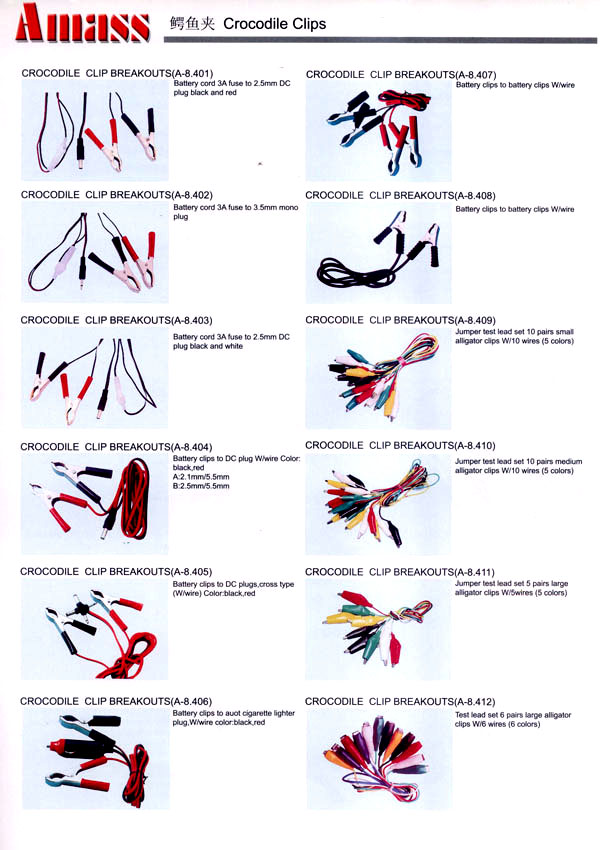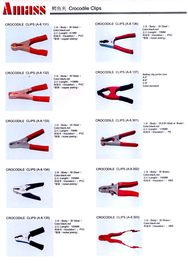 本公司專(zhuān)業(yè)生產(chǎn)各類(lèi)香蕉插頭,香蕉插座,接線柱,電瓶夾,鱷魚(yú)夾,測(cè)試導(dǎo)線,測(cè)試筆等。產(chǎn)品分2mm/2.5mm/3mm/3.5mm/4mm五大系列,百余種款式, 各種香蕉插廣泛用于儀器、儀表、電力測(cè)試、教學(xué)、玩具,視聽(tīng)設(shè)備、醫(yī)療儀器,保健產(chǎn)品等領(lǐng)域。公司技術(shù)力量雄厚,生產(chǎn)工藝先進(jìn),產(chǎn)品遠(yuǎn)銷(xiāo)港、臺(tái)、歐美,并與飛利浦等國(guó)際品牌配套。公司本著精益求精的理念,歡迎新老客戶光臨。 我們擁有資深的工程師和豐富的電子產(chǎn)品銷(xiāo)售經(jīng)驗(yàn),專(zhuān)業(yè)生產(chǎn)各類(lèi)電子接插件產(chǎn)品。 香蕉插頭,香蕉插座,電瓶夾,鱷魚(yú)夾等品種齊全、 質(zhì)量可靠,致力服務(wù)于通訊、數(shù)據(jù)通信、消費(fèi)類(lèi)電子產(chǎn)品、計(jì)算機(jī)和計(jì)算機(jī)外圍設(shè)備以及工業(yè)應(yīng)用等領(lǐng)域,能給客戶提供全面采購(gòu)解決方案。 我們秉承穩(wěn)健作風(fēng)、誠(chéng)實(shí)經(jīng)營(yíng)、合理價(jià)格、完善服務(wù)的宗旨,在全體客戶的支持下,公司不斷創(chuàng)新進(jìn)取,業(yè)績(jī)蒸蒸日上,已與數(shù)十家電子零件制造商及其分支機(jī)構(gòu)建立密切合作關(guān)系,在國(guó)內(nèi)擁有數(shù)百家固定客戶。